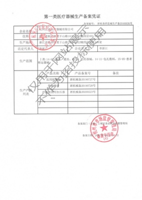 靠前類醫(yī)療器械生產(chǎn)備案憑證